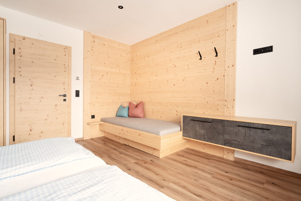 Sitzbänke als Fensterbänke in den Schlafzimmern mit wunderbarem Weitblick ins Tal